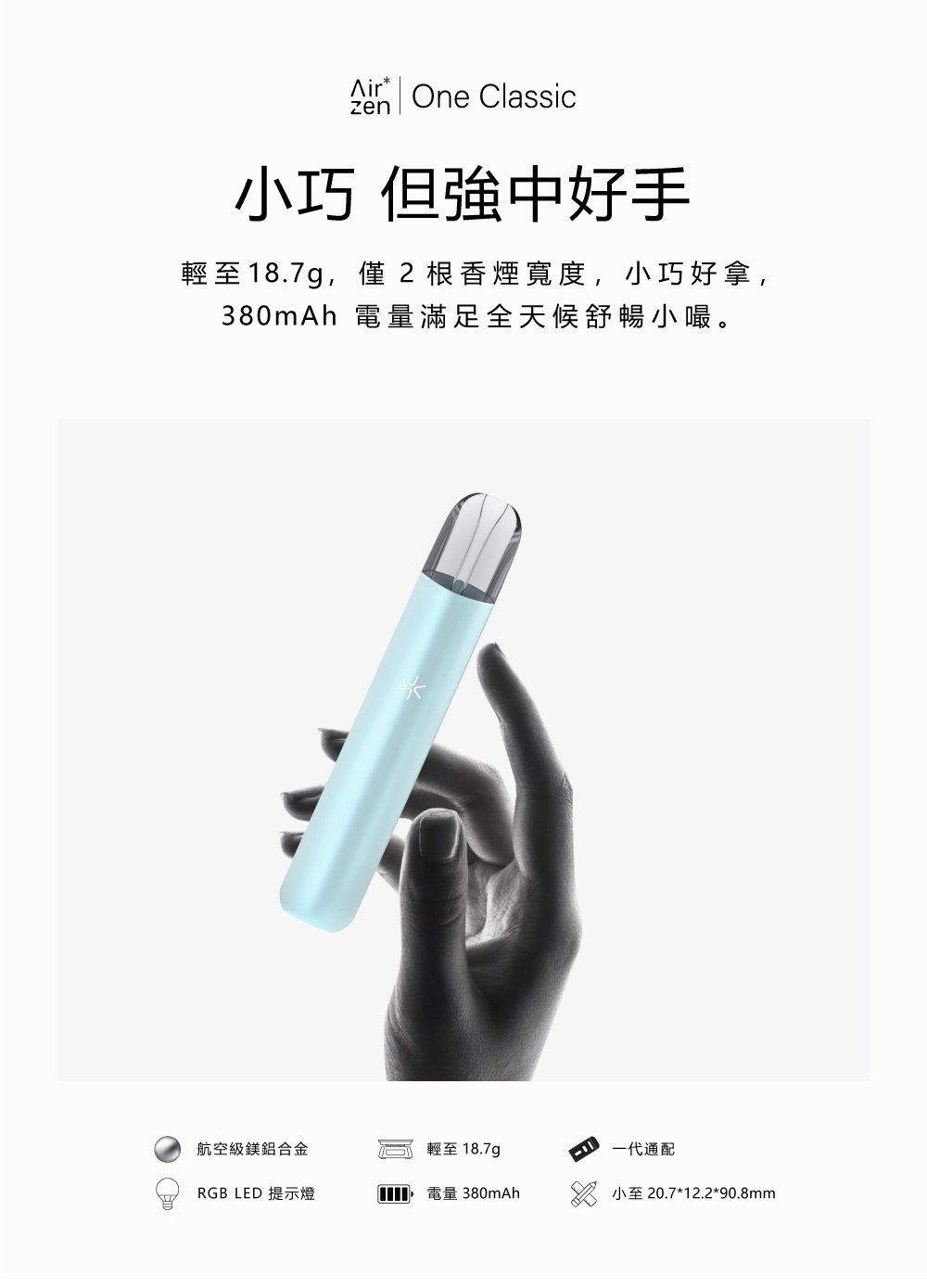 輕至18.7g,僅 2 根香煙寬度,小巧好拿,